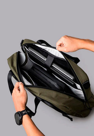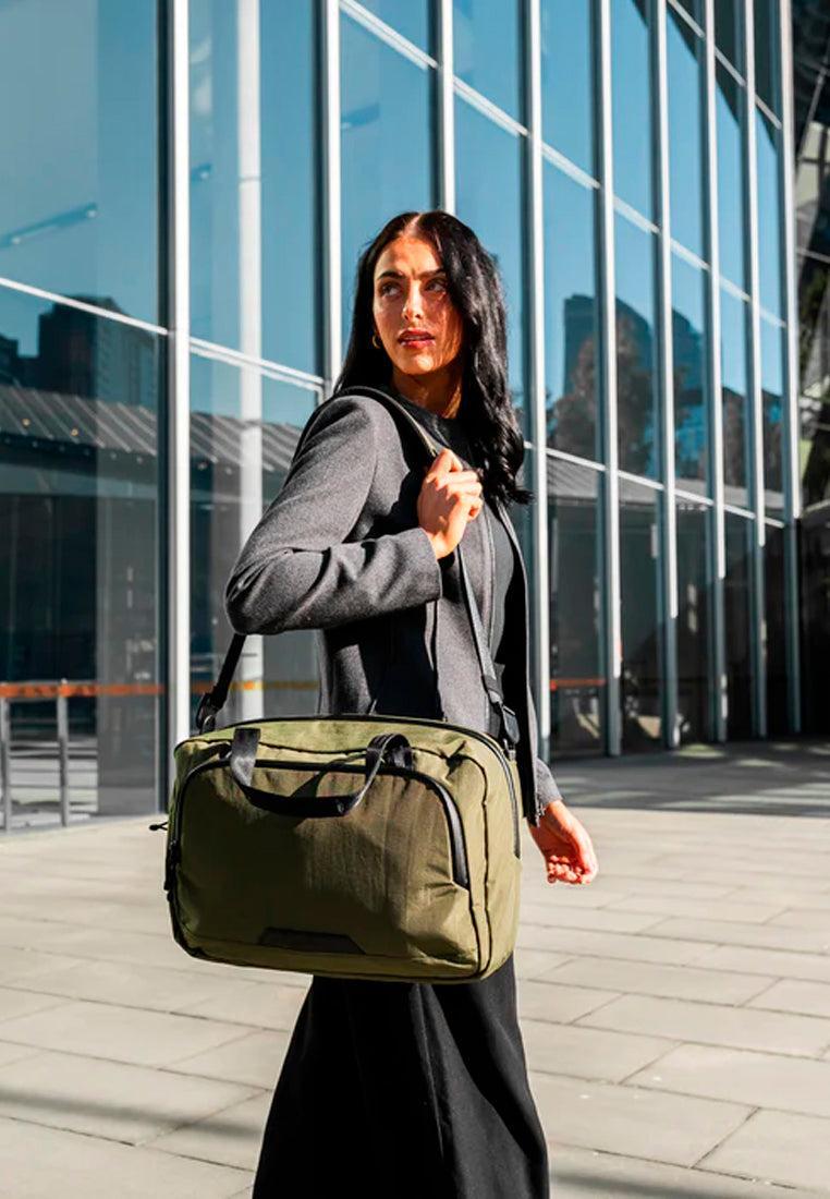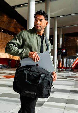 The Bravo Brief combines padded tech protection with organized storage in a clean, versatile design that moves between office and airport without missing a beat. Hand carry for meetings, shoulder carry for commutes, and smart pockets for everything in between.