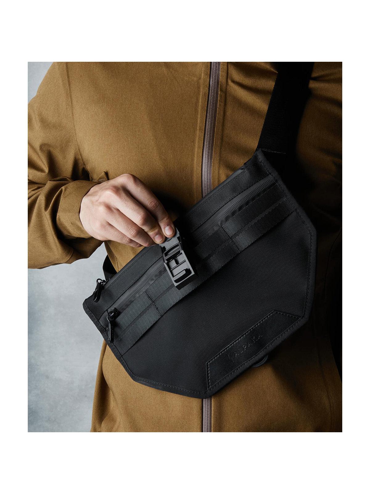 Chrome Industries Kadet is a compact messenger-style sling bag constructed with military grade materials. It's built to carry your essentials in a small, comfortable, lightweight pack with a quick release aluminum seatbelt buckle.