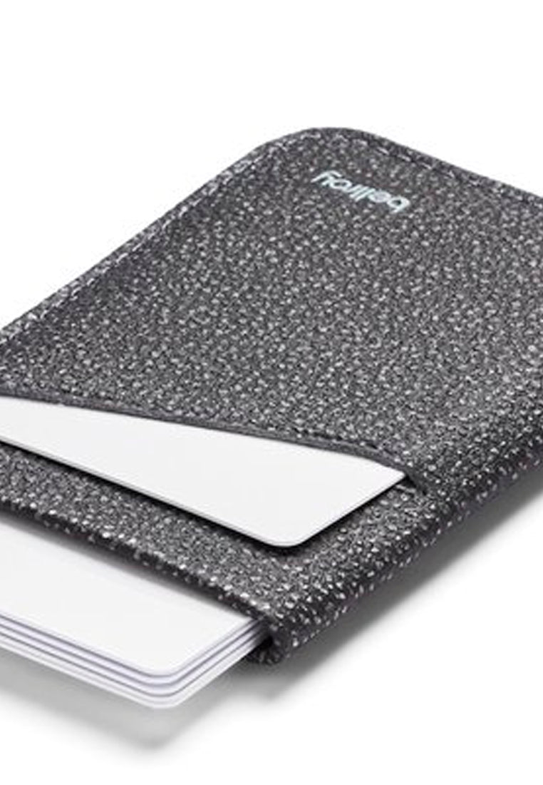 A tiny sleeve for use as a wallet or business card holder. The Card Sleeve is the slimmest style in the Bellroy arsenal. It can be used as a business card holder, or even as a full-time wallet for those who have a black belt in slimming their pocket contents. The main section features a pull tab for easy storage of cards and money, while the outside pockets can be used for quick-access items.