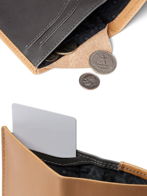 The all-rounder that loves your bills, cards and coins. Fit your cash, coins and up to eleven cards in a slim profile. The Note Sleeve stores flat bills with ease, has quick-access slots for your daily cards and a storage area with a convenient pull-tab for less used cards. There’s even a coin pouch that doubles as a business card protector. Slim your wallet, without turning your world upside down.