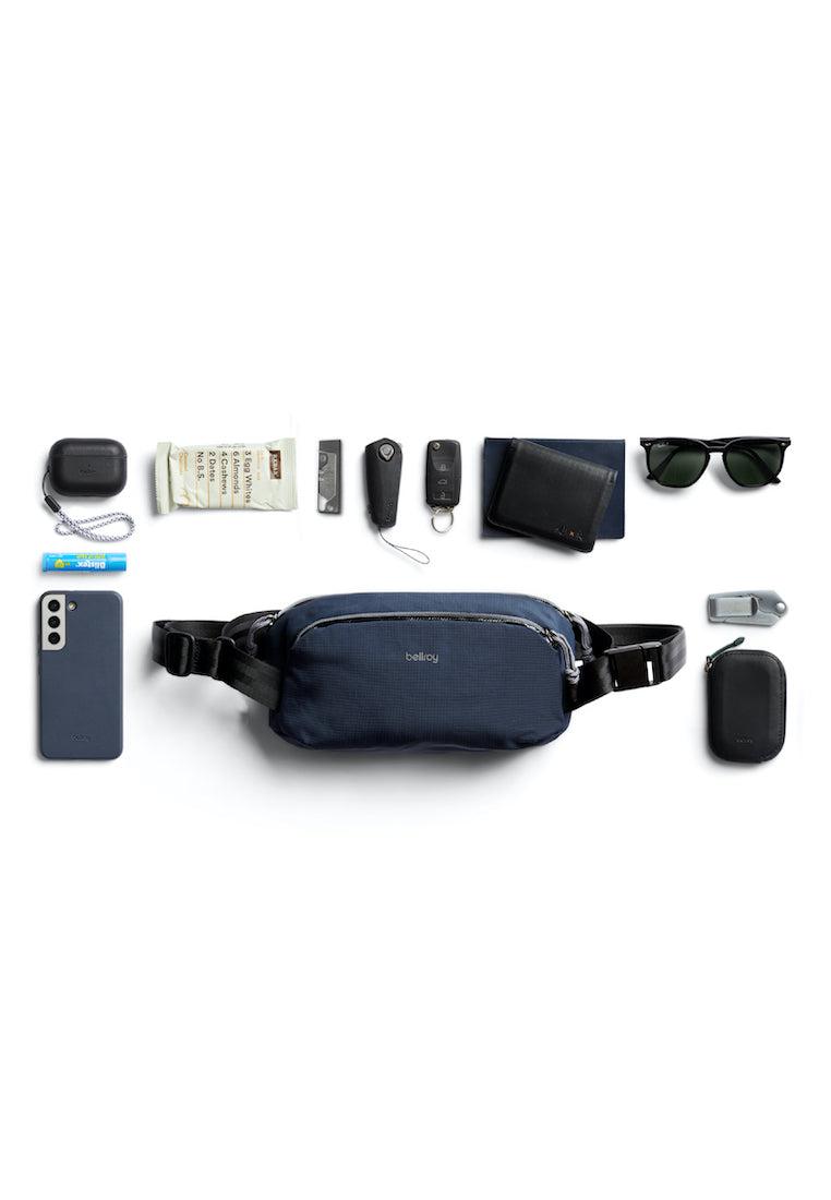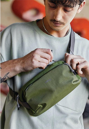 “We designed the layout and access of this sling around the objects you carry every day – phone, keys, earbuds – to keep them organized and handy, but out of the way.”