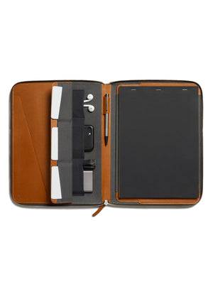When your things are in disarray, so is your mind. The Work Folio keeps your notebooks, papers, cards, pens, devices, cables and more, in one premium leather compendium. So you remain composed and in control.