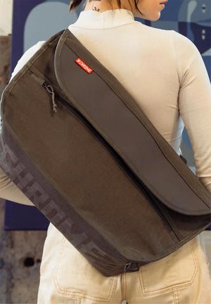 Chrome Industries Kadet is a compact messenger-style sling bag constructed with military grade materials. It's built to carry your essentials in a small, comfortable, lightweight pack with a quick release aluminum seatbelt buckle.