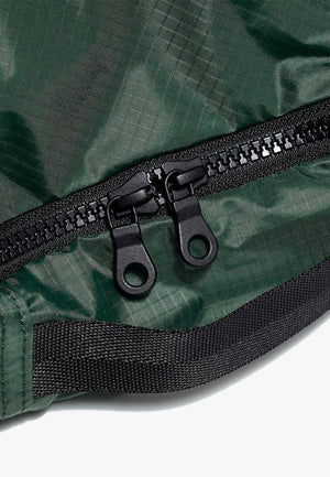 We used a slippery parachute ripstop nylon that won't catch in your luggage and goes down smooth. An exceptional hand-feel will make you want to stuff a hoodie inside and use it as an airplane pillow.