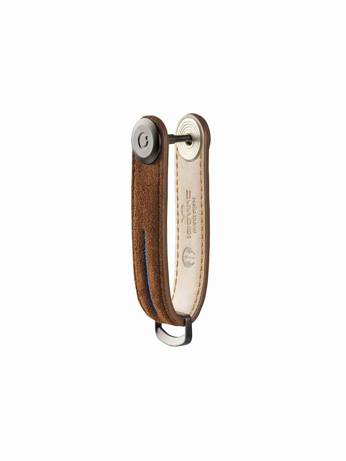 Inspired by Obi-Wan Kenobi’s™ Jedi™ robes, this Key Organiser features brown suede with an ivory leather lining, gunmetal hardware, and a debossed blue lightsaber motif.