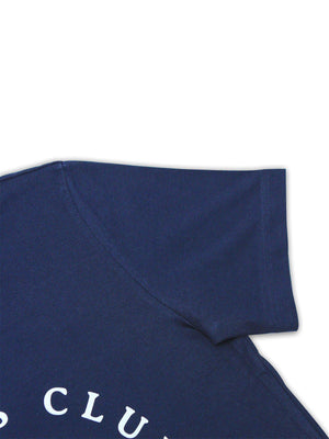 Our signature in navy T-shirt which represents what lindy's club is. Double-stitched on the neck to make the construction stronger. With a blindstitched detail on the sleeves & hem.